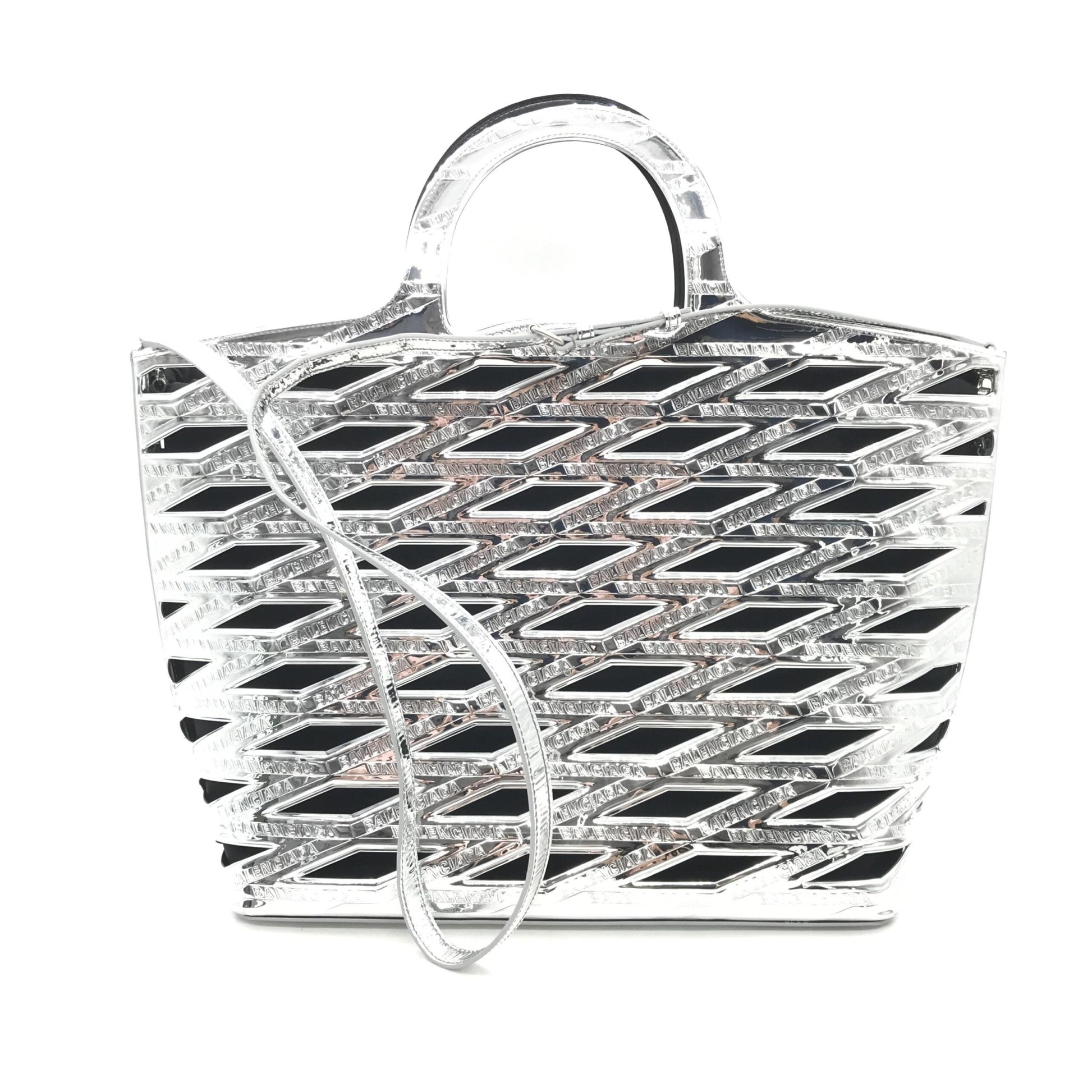 Adorned in a striking silver hue, this handbag is designed to make a statement, effortlessly elevating any ensemble. The versatility of the Neo Basket is enhanced by its 2-way shoulder strap, allowing you to carry it as a tote or wear it as a shoulder bag, adapting to your style needs.